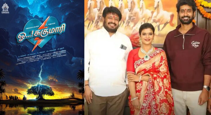 இன்று படத்தின் தலைப்பு “ ஓ சுகுமாரி” என அதிகாரப்பூர்வமாக அறிவிக்கப்பட்டுள்ளது. இன்று வெளியிடப்பட்டுள்ள டைட்டில் அறிவிப்பு போஸ்டர், அனைவரின் கவனத்தையும் ஈர்த்துள்ளது. நீல நிற இதயத்தை எழுதியபடி அதனை இரண்டு பாகங்களாகப் பிளக்கும் ஆரஞ்சு மின்னல் குறியீடு, பின்னணியில் பெரிய ஆலமரம், கிராம சூழல், ஓடிக்கொண்டிருக்கும் கிராமவாசிகள், இவை அனைத்தும் சேர்ந்து இப்படம் காதல், எமோசன், எதிர்பாராத திருப்பங்கள் கொண்ட கதை என்பதை சுட்டிக்காட்டுகின்றன.