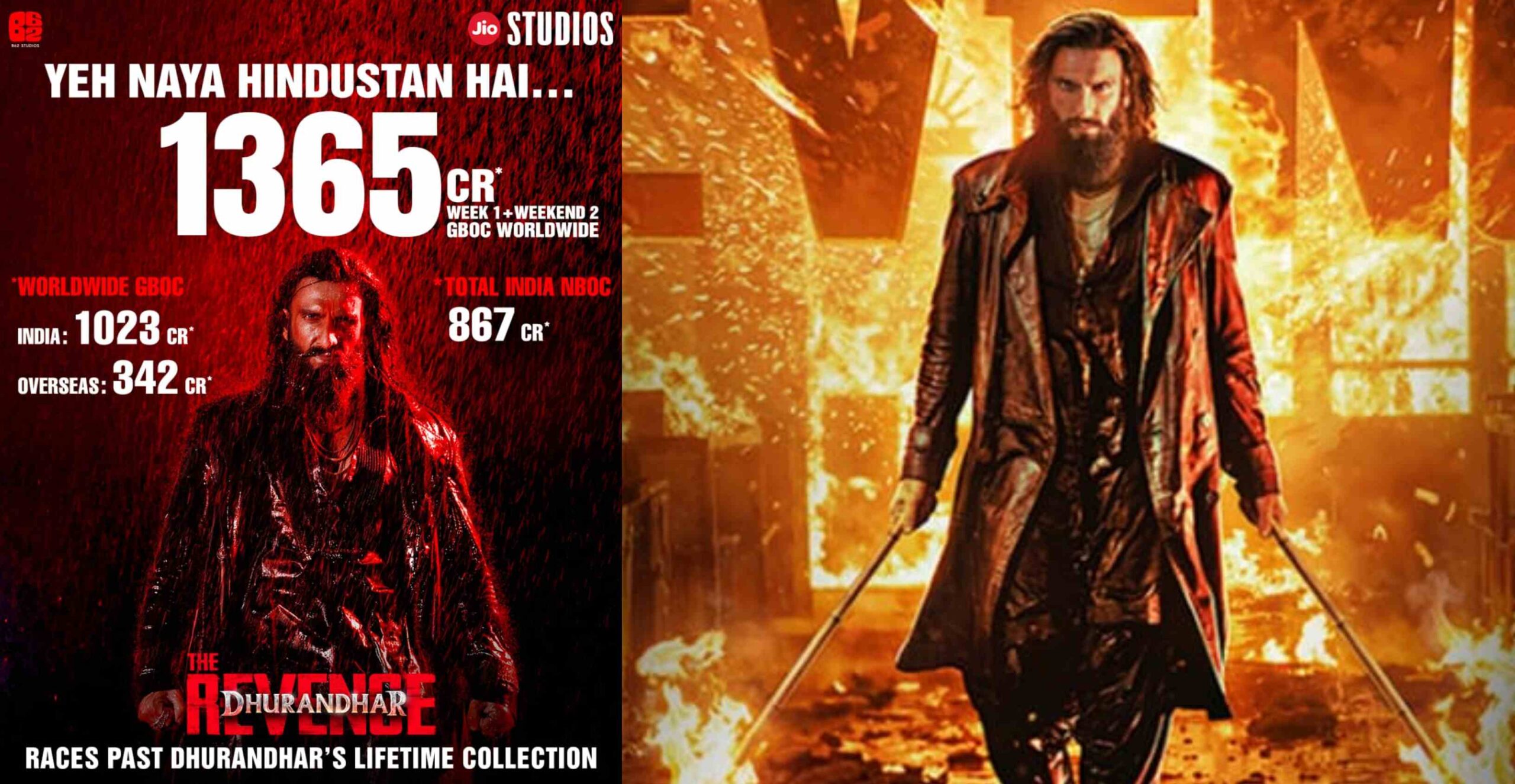 ஜியோ ஸ்டுடியோஸ் & பி62 ஸ்டுடியோஸ் தயாரிப்பில், ஆதித்யா தார் இயக்கத்தில் உருவாகியுள்ள துரந்தர் பழிவாங்கல் திரைப்படம் பாக்ஸ் ஆபிஸில் வரலாற்று சாதனைகளை படைத்து வருகிறது. எவராலும் அசைக்க முடியாத மாபெரும் ஹிந்தி படமாக உருவெடுத்துள்ள இப்படம், உலகளவில் ரூ. 1365 கோடியும், இந்தியாவில் ரூ. 867 கோடியும் வசூலித்து அசத்தியுள்ளது. வெறும் 11 நாட்களிலேயே துரந்தர் முதல் பாகத்தின் மொத்த வாழ்நாள் வசூலையும் முறியடித்து, உலகளாவிய மார்க்கெட்டில் தனது அசாதாரண ஆதிக்கத்தை நிலைநிறுத்தியுள்ளது.
