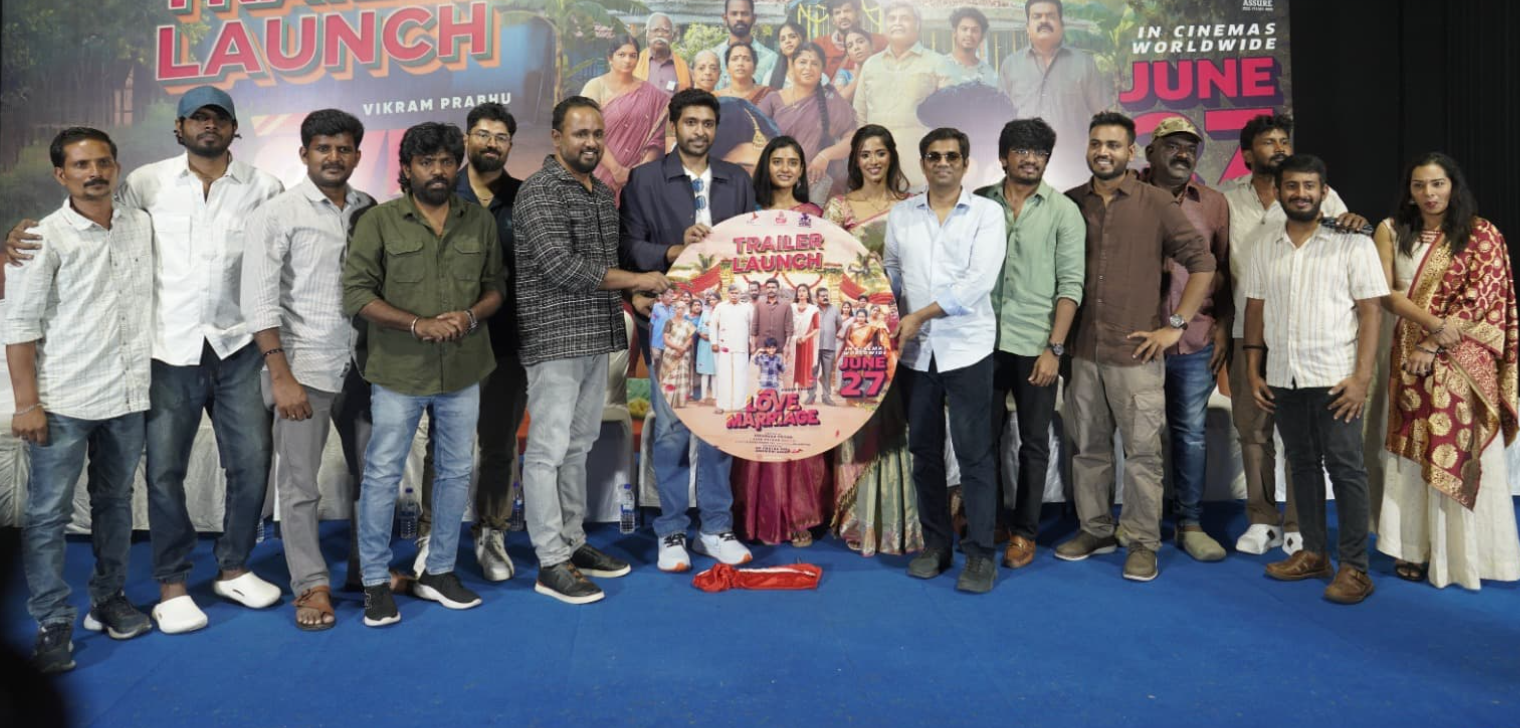 அஸ்யூர் பிலிம்ஸ் மற்றும் ரைஸ் ஈஸ்ட் என்டர்டெய்ன்மென்ட் நிறுவனத்தின் தயாரிப்பில், இயக்குநர் சண்முக பிரியன் இயக்கத்தில், விக்ரம் பிரபு – சுஷ்மிதா பட் முதன்மையான வேடங்களில் நடித்திருக்கும் ‘லவ் மேரேஜ்’ எனும் திரைப்படத்தின் ட்ரைலர் வெளியீட்டு விழா சென்னையில் நடைபெற்றது. இவ்விழாவில் படக்குழுவினருடன் இயக்குநர் ஆதிக் ரவிச்சந்திரன் சிறப்பு விருந்தினராக கலந்து கொண்டார்.