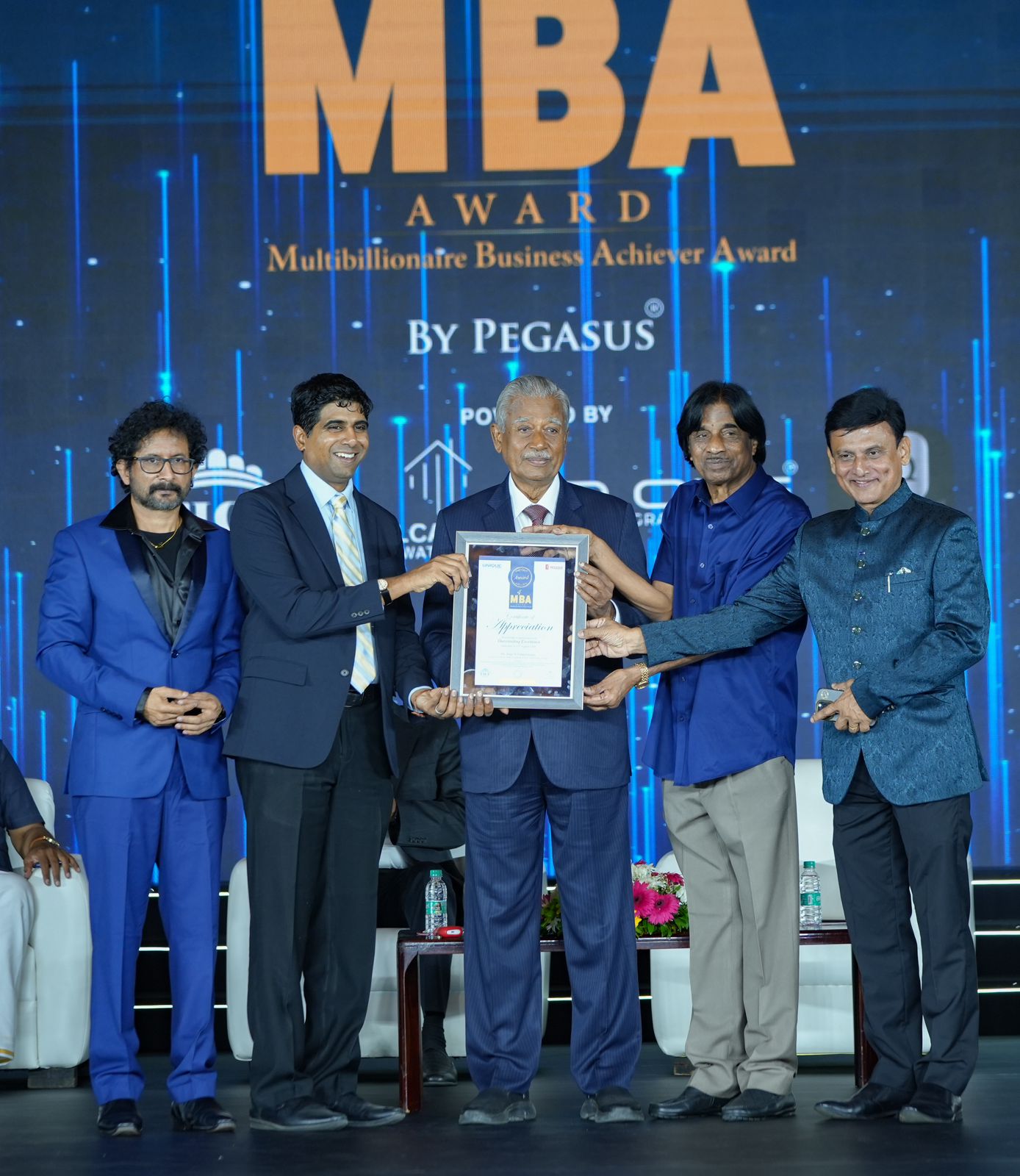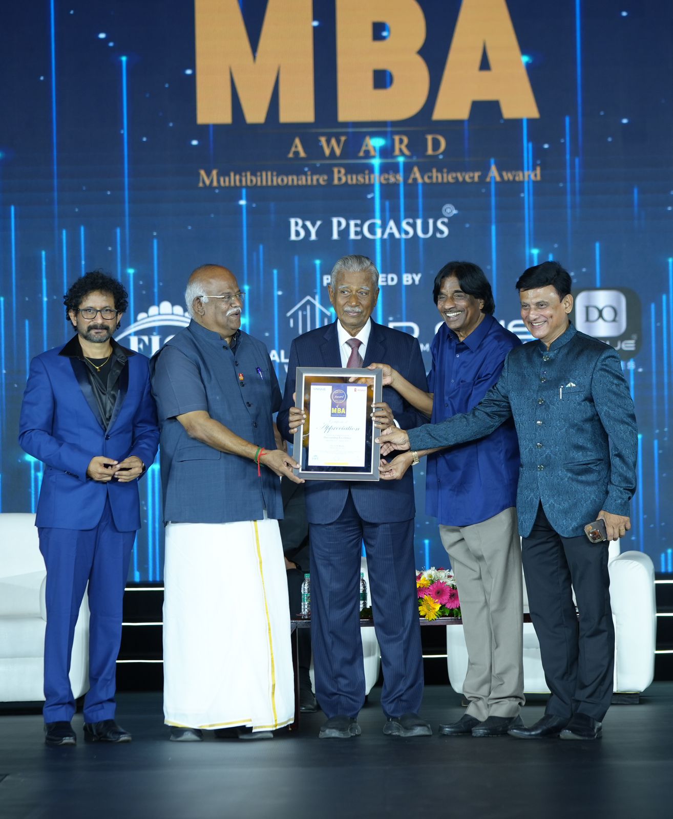 யுனிக் டைம்ஸ் மணப்புரம் மற்றும் FICF உடன் இணைந்து நடத்திய மதிப்பிற்குரிய மல்டி பில்லியனர் வணிக சாதனையாளர் (MBA) விருது வழங்கும் விழாவின் 16வது பதிப்பு ஆகஸ்ட் 13, 2024 அன்று கோயம்புத்தூரில் உள்ள லீ மெரிடியனில் நடைபெற்றது. டாக்டர். அஜித் ரவி பெகாசஸால் உருவாக்கப்பட்ட இந்த நிகழ்வு, பிஸினஸ் சாதனைகள் மற்றும் சமூக பங்களிப்புகளுக்காக சிறந்த பிஸினஸ் ஐகான்களை கொண்டாடியது. பெகாசஸாஸ் தலைவரும் MBA விருது FICF நிறுவனருமான டாக்டர் அஜித் ரவி தலைமையில் நடைபெற்ற இந்த நிகழ்வில், அமைதி, நல்லிணக்கம் மற்றும் நல்லாட்சிக்கான அறக்கட்டளையின் (ஏஜ் கேர் இந்தியா) தலைவரும், மத்திய பணியகத்தின் முன்னாள் இயக்குநருமான பத்மஸ்ரீ டாக்டர் டி.ஆர்.கார்த்திகேயன் கலந்துகொண்டார். புலனாய்வுப் பிரிவின் தலைமை விருந்தினராக, EBG அறக்கட்டளையின் தலைவரும், ஜார்கண்ட் ஆளுநரின் கல்வி ஆலோசகருமான டாக்டர். இ பாலகுருசாமி கௌரவ விருந்தினராகவும், முன்னாள் மாவட்ட ஆளுநர், ரோட்டரி இன்டர்நேஷனல் & இன்டர்நேஷனல் கார்ப்பரேட் பயிற்சியாளரான டாக்டர் குரியாச்சன் கே.ஏ. கலந்துகொண்டனர். இந்நிகழ்வில் ஸ்ரீ சௌந்தரராஜன் பங்காருசாமி (தலைவர், சுகுணா ஃபுட்ஸ் மற்றும் சுகுணா ஹோல்டிங்ஸ்), ஸ்ரீ சி கே குமரவேல் (குரூம் இந்தியா சலோன்ஸ் இணை நிறுவனர் மற்றும் தலைமை நிர்வாக அதிகாரி), ஸ்ரீ வி சி பிரவீன் (ஸ்ரீ கோகுலம் குழும நிறுவனங்களின் துணைத் தலைவர்), டாக்டர் அருண் என். பழனிசாமி (நிர்வாக இயக்குனர், KMCH மருத்துவமனைகள் குழு), மற்றும் ஸ்ரீ V R முத்து (தலைவர் & இணை நிறுவனர், இதயம் குழுமம்) ஆகியோர் விருது பெற்றனர்.