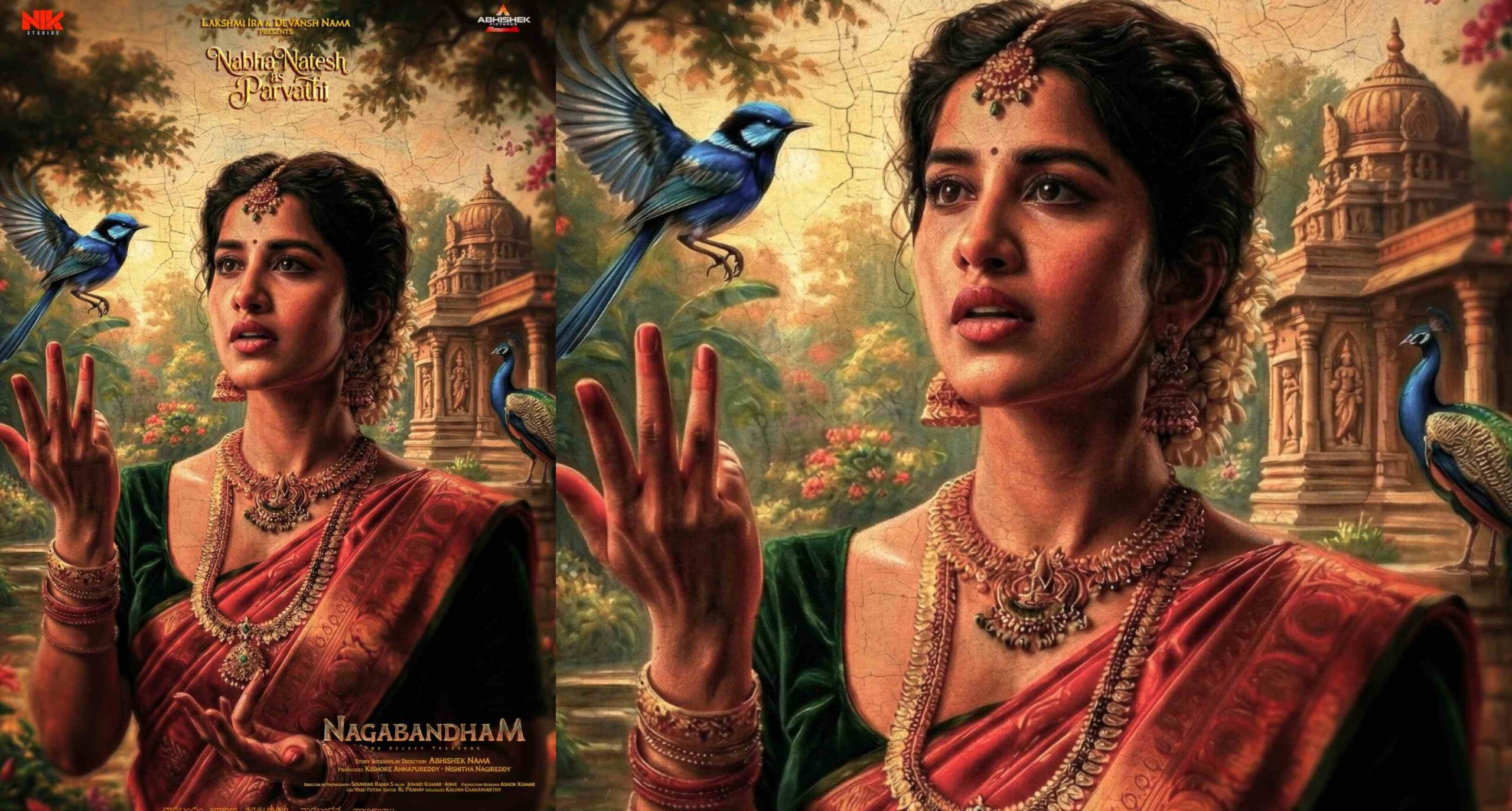 “நாகபந்தம்” (Nagabandham) எனும் பிரமாண்ட புராண ஆக்ஷன் திரைப்படம், இயக்குநர் அபிஷேக் நாமாவின் கனவு முயற்சியாக உருவாகி வருகிறது. விராட் கர்ணா நாயகனாக நடிக்கும் இந்த படம், தயாரிப்பின் இறுதிக்கட்டத்தை எட்டியுள்ள நிலையில், ‘பார்வதி’ கதாபாத்திரத்தில் தோன்றும் நாயகி நபா நடேஷின் (Nabha Natesh) ஃபர்ஸ்ட் லுக் போஸ்டரை படக்குழு வெளியிட்டுள்ளது.