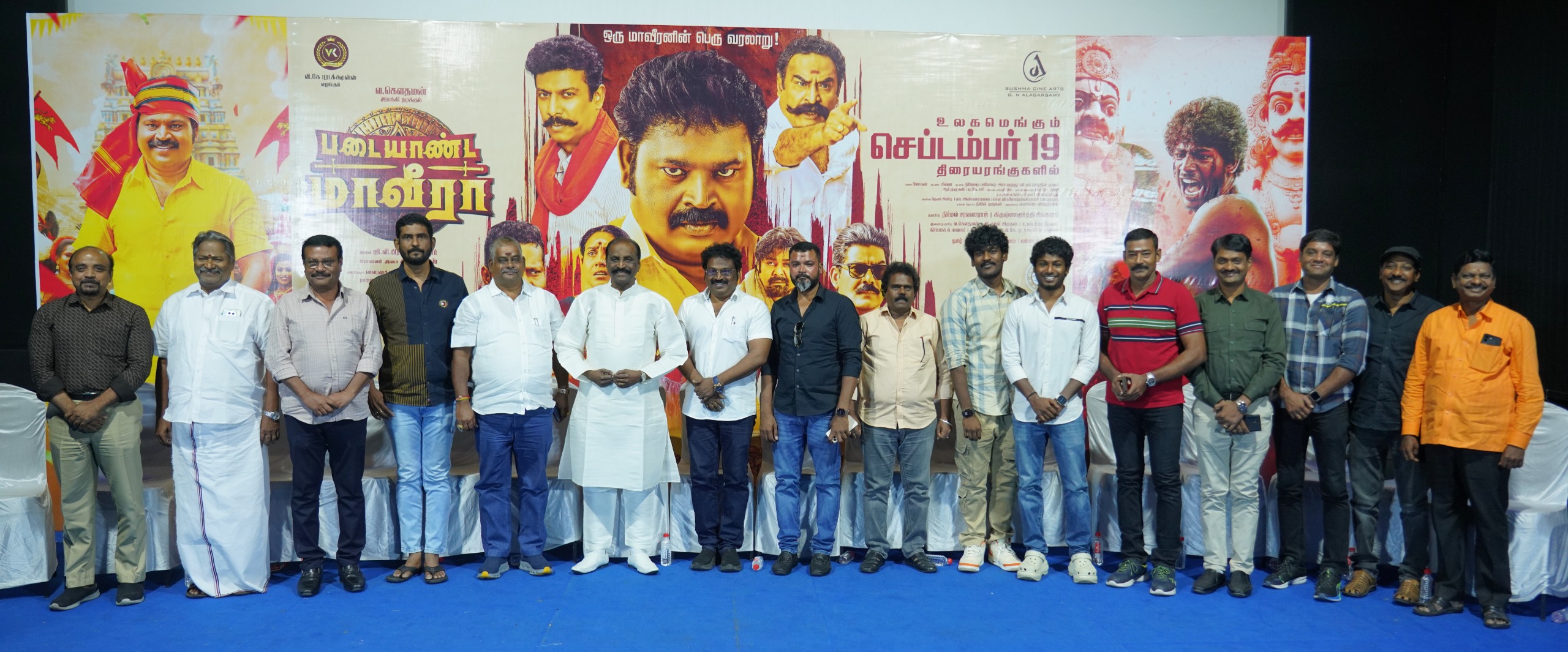 வ. கௌதமன் இயக்கி நடித்துள்ள திரைப்படம் ‘படையாண்ட மாவீரா’. வ. கௌதமன் உடன் சமுத்திரக்கனி, பூஜிதா பொன்னாடா, இளவரசு, ‘பாகுபலி’ பிரபாகர், சரண்யா பொன்வண்ணன், ‘ஆடுகளம்’ நரேன், மன்சூர் அலிகான், ரெடின் கிங்ஸ்லி, மதுசூதன் ராவ், ‘நிழல்கள்’ ரவி , ‘தலைவாசல்’ விஜய், சாய் தீனா உள்ளிட்டோர் நடித்திருக்கிறார்கள். கோபி ஜெகதீஸ்வரன் ஒளிப்பதிவு செய்திருக்கும் இந்த திரைப்படத்திற்கு ஜி.வி பிரகாஷ் குமார் மற்றும் சாம் சி. எஸ். இசையமைத்திருக்கிறார்கள். வட தமிழகத்தில் பெரும்பான்மையாக வாழும் மக்களின் நம்பிக்கை நட்சத்திரமாக வாழ்ந்து மறைந்த ‘காடுவெட்டி’ குருவின் சுயசரிதையை தழுவி தயாராகி இருக்கும் இந்த திரைப்படத்தை வி கே புரொடக்ஷன்ஸ் நிறுவனம் சார்பில் நிர்மல் சரவணனராஜ், எஸ். கிருஷ்ணமூர்த்தி ஆகியோர் இணைந்து தயாரித்திருக்கிறார்கள். இந்த திரைப்படத்தில் வ.கௌதமன், ஈ. குறளமுதன், யு .எம். உமாதேவன், கே. பாஸ்கர், கே. பரமேஸ்வரி ஆகியோர் இணை தயாரிப்பாளர்களாக பங்காற்றியுள்ளனர். வரும் 19ம் தேதியன்று வெளியாகும் இந்த படத்தை சுஷ்மா சினி ஆர்ட்ஸ் ஜி. என். அழகர் உலகெங்கும் உள்ள திரையரங்குகளில் வெளியிடுகிறார். இப்படத்தின் பத்திரிகையாளர் சந்திப்பு சென்னையில் நடைபெற்றது.