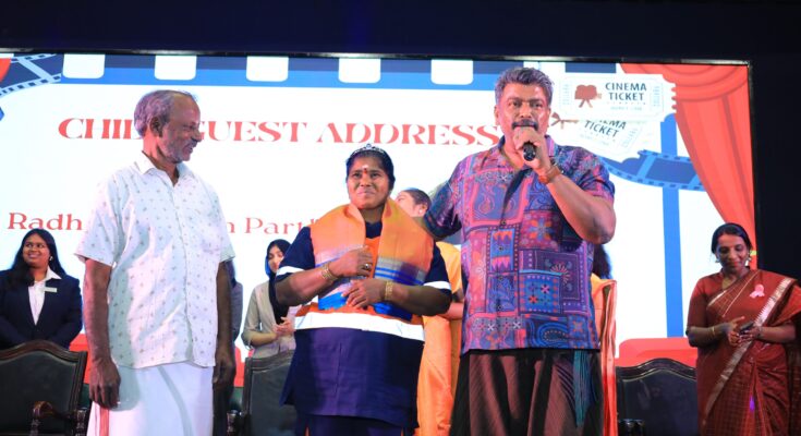 இந்நிலையில் புதுமைகளின் புகலிடமாக விளங்கும் இயக்குநரும் நடிகருமான இராதாகிருஷ்ணன் பார்த்திபன் தூய்மை பணியாளர் பத்மாவை எத்திராஜ் மகளிர் கல்லூரிக்கு அழைத்து சென்று கௌரவித்துள்ளார்.