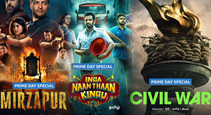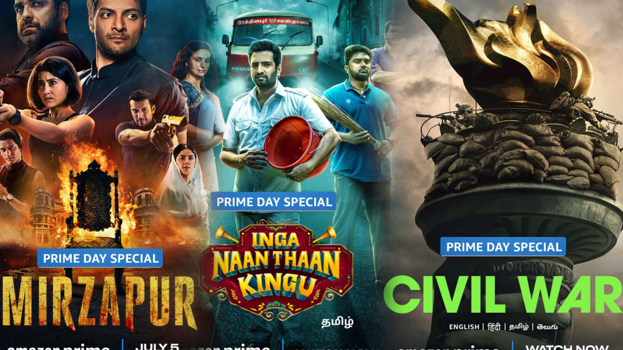 ரோஜர் ஃபெடரரின் தொழில்முறை விளையாட்டு களத்தின் இறுதி பன்னிரண்டு நாட்களைப் பின்தொடரும் ஃபெடரர்: ட்வெல்வ் ஃபைனல் டேஸ் (ஆங்கிலம்) ஆவணப்படம், டிஸ்டோபியன் த்ரில்லர் சிவில் வார் (ஆங்கிலம்), சமூக நாடகம் PT சார் (தமிழ்), விமர்சன ரீதியாகப் பாராட்டப்பட்ட நாச் கா குமா (மராத்தி), ஹீஸ்ட் காமெடியான கம் கம் கணேஷா (தெலுங்கு), வரலாற்று கதை ஒரிஜனல் தொடர் மை லேடி ஜேன் (ஆங்கிலம்), நகைச்சுவை களம் கொண்ட சர்மாஜி கி பேட்டி (இந்தி), மற்றும் அதிரடி நகைச்சுவை பொழுதுபோக்குச் சித்திரமான இங்க நான் தான் கிங்கு (தமிழ்) போன்ற ஆவலுடன் எதிர்பார்க்கப்பட்ட திரைப்படங்கள் மற்றும் தொடர்களுடன் பிரைம் வீடியோவில் பிரைம் டே கொண்டாட்டங்கள் முன்னதாகவே தொடங்கிவிட்டன. இந்த அற்புதமான திரைப்படங்கள் மற்றும் தொடர்கள் அனைத்தும் இப்போது பிரைம் வீடியோவில் காணக் கிடைக்கிறது.