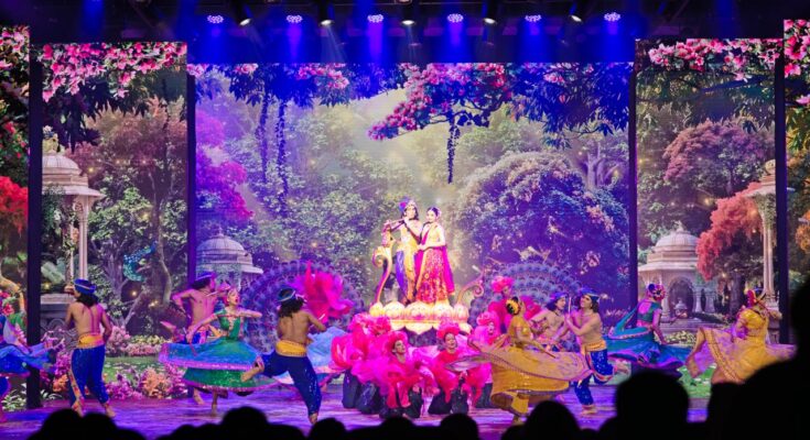 ‘ராஜாதிராஜ் யாத்ரா’ இசை, நடனம் மற்றும் கதைசொல்லல் மூலம் கிருஷ்ணரின் வாழ்க்கை மற்றும் தெய்வீக பெருமைகளை முன்வைக்கும் பெரிய அளவிலான கலைப் படைப்பாகும். கோகுலத்தின் குறும்பு குழந்தை முதல் ஞானமுள்ள தத்துவஞானி மற்றும் துவாரகையின் மாமன்னர் என இந்த நிகழ்ச்சி கிருஷ்ணரை பல வடிவங்களில் சித்தரிக்கிறது. பகவான் ஸ்ரீ கிருஷ்ணரின் கருணை, தைரியம் மற்றும் போதனைகளை இந்த நாடகம் எடுத்துரைக்கிறது. மறக்கமுடியாத கலாச்சார அனுபவமாக இது வடிவமைக்கப்பட்டுள்ளது.