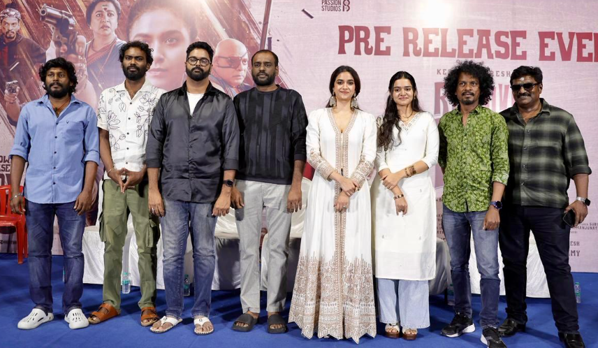 Passion Studios சார்பில் சுதன் சுந்தரம் மற்றும் The Route நிறுவனத்தின் சார்பில் ஜகதீஷ் பழனிச்சாமி இணைந்து தயாரிக்க, இயக்குநர் JK சந்துரு இயக்கத்தில், நடிகை கீர்த்தி சுரேஷ் முதன்மைப் பாத்திரத்தில், நாயகியாக நடித்துள்ள “ரிவால்வர் ரீட்டா” திரைப்படம் வரும் நவம்பர் 28 ஆம் தேதி உலகமெங்கும் திரையரங்குகளில் வெளியாகிறது. இப்பட வெளியீட்டை ஒட்டி, படத்தின் முன் வெளியீட்டு நிகழ்வு, படக்குழுவினர் கலந்துகொள்ள, பத்திரிக்கை ஊடக நண்பர்கள் முன்னிலையில் கோலாகலமாக நடைபெற்றது.