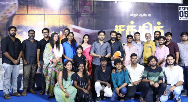 மார்கன் வெற்றிக்குப் பிறகு விஜய் ஆண்டனி நடிப்பில் உருவாகியிருக்கும் படம் “சக்தித் திருமகன்”. அருண் பிரபு இயக்கத்தில், ஷெல்லி காலிஸ்ட் ஒளிப்பதிவில், பாத்திமா விஜய் ஆண்டனி கம்பெனி, விஜய் ஆண்டனி பிலிம் கார்பரேஷன் நிறுவனம் சார்பாக மீரா விஜய் ஆண்டனி தயாரித்திருக்கிறார். இப்படத்தின் இரண்டு பாடல்கள் மற்றும் டீசர் விஜய் ஆண்டனியின் பிறந்த நாளில் (24.07.2025) பத்திரிகையாளர்கள் முன்னிலையில் வெளியிடப்பட்டது. இவ்விழாவில் விஜய் ஆண்டனி, அருண் பிரபு, தனஞ்செயன், கார்த்திக் நேத்தா, திருப்தி, அரவிந்த் ராஜ் மற்றும் படக்குழுவில் பலரும் கலந்துக் கொண்டு இவ்விழாவிற்கு சிறப்பு சேர்த்தனர்.