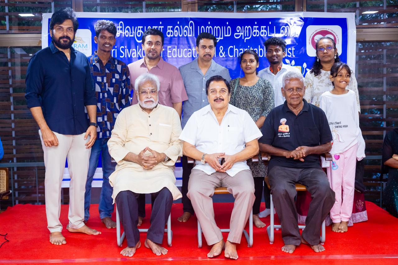 நிகழ்வில் திரைக்கலைஞர் சூர்யா பேசியதாவது, ‘சிவகுமார் கல்வி அறக்கட்டளை’ பரிசளிப்பு விழா முதலில் எங்கள் வீட்டில் இருந்து நடக்கும். தமிழ்நாடு முழுவதும் இருந்து ஜெயிச்சவங்க குடும்பம், குடும்பமா வருவாங்க. வந்து சான்றிதழ் வாங்கிட்டு போவாங்க. அதெல்லாம் பசுமையா நினைவில் இருக்கிறது. இந்த கட்டிடத்தை ஒரு தாய் வீடு மாதிரி, ஏணியா பார்க்கிறேன். நிறைய கனவுகள் நனவாகறத பார்க்கிறேன். நாம என்ன பார்க்கிறோமோ, எதை நினைக்கிறோமோ அது ஒரு விளைவை ஏற்படுத்தும். தனியா நாம ஜெயிக்க முடியாது. ஒரு கூட்டு முயற்சி தான் வெற்றி பெறும். நம்ம கூட இருக்கவங்கட்ட இருக்கும் நல்ல விஷயங்களை எடுத்துக்கிட்டு பயணிச்சா நமக்குன்னு ஒரு பாதை உண்டாகும். நேர்மறையாக இருங்க. எத்தனை கஷ்டமான சூழல் இருந்தாலும், மனவலிமை அத்தனையும் கடந்து ஜெயிக்க வைக்கும். வாழ்க்கை நமக்கு நிறைய விஷயங்கள் கற்று கொடுக்கும். இன்றைக்கு இல்லேன்னாலும், நாளை நீங்க ஜெயிச்சு வருவீங்க. நம்பிக்கையோட நல்ல உறவுகள், நல்ல நட்புகள் வைத்து கொள்ளுங்கள். வாழ்க்கை அழகா மாறும். உடல் நலம், குடும்பம், உறவுகள் என அனைத்துக்கும் நேரம் ஒதுக்கி சமநிலையோட வாழ்க்கையை அணுகுங்கள். அனைவருக்கும் வாழ்த்துக்கள் என்றார்.
