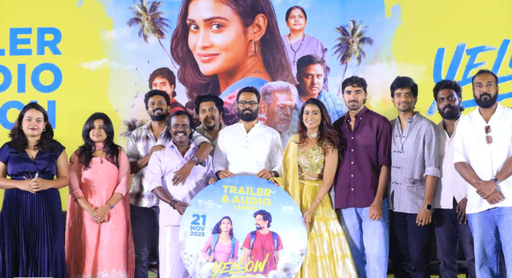 Covai Film Factory சார்பில் பிரசாந்த் ரங்கசாமி தயாரிப்பில், அறிமுக இயக்குநர் ஹரி மகாதேவன் இயக்கத்தில், வைபவ், பூர்ணிமா ரவி நடிப்பில், மாறுபட்ட களத்தில், உருவாகியிருக்கும் திரைப்படம் “யெல்லோ” ( Yellow). பெண் கதாபாத்திரத்தை மையமாகக் கொண்டு, அசத்தலான கமர்ஷியல் டிராமாவாக அனைவரையும் ஈர்க்கும் வகையில் உருவாகியிருக்கும் இப்படம் வரும் நவம்பர் 21 ஆம் தேதி திரைக்கு வரவுள்ள நிலையில், இப்படத்தின் இசை மற்றும் டிரெய்லர் வெளியீட்டு விழா, படக்குழுவினர் கலந்துகொள்ள, பத்திரிக்கை ஊடக நண்பர்கள் முன்னிலையில் கோலாகலமாக நடைபெற்றது.
